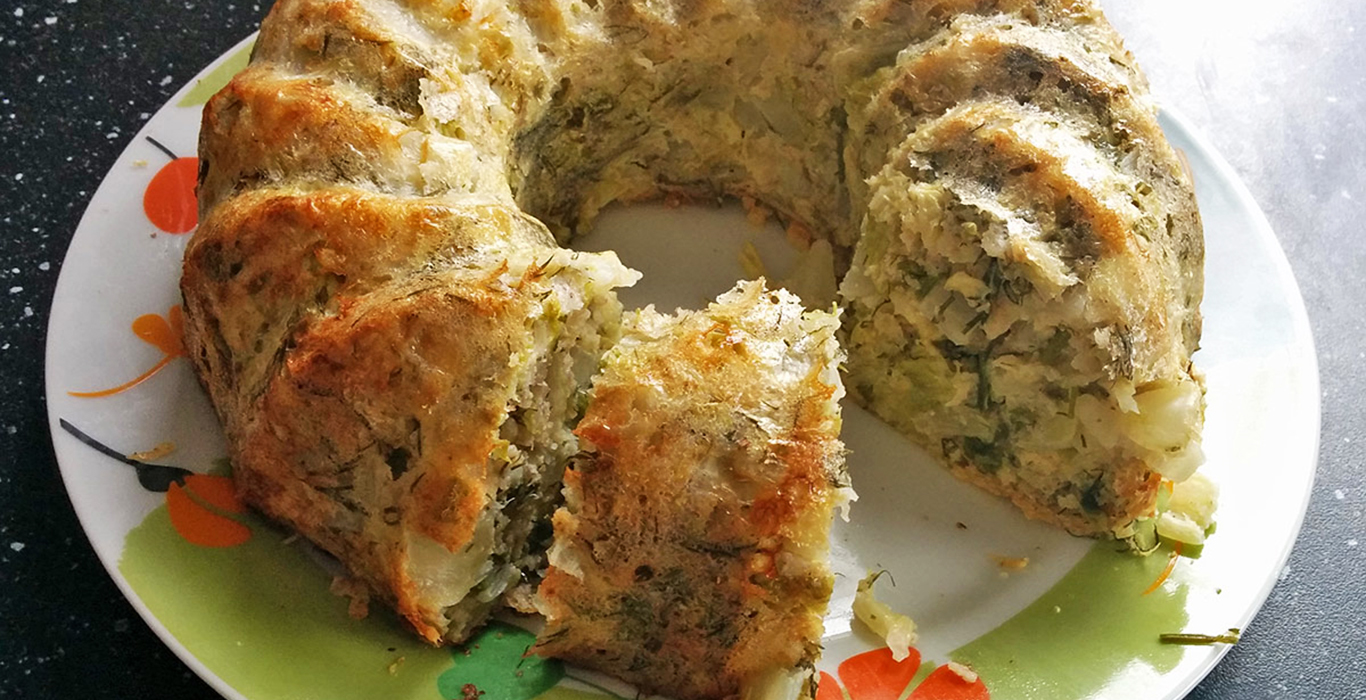 Smør en passende gryde indvendig og foer den med de kogte hvidkålsblade.