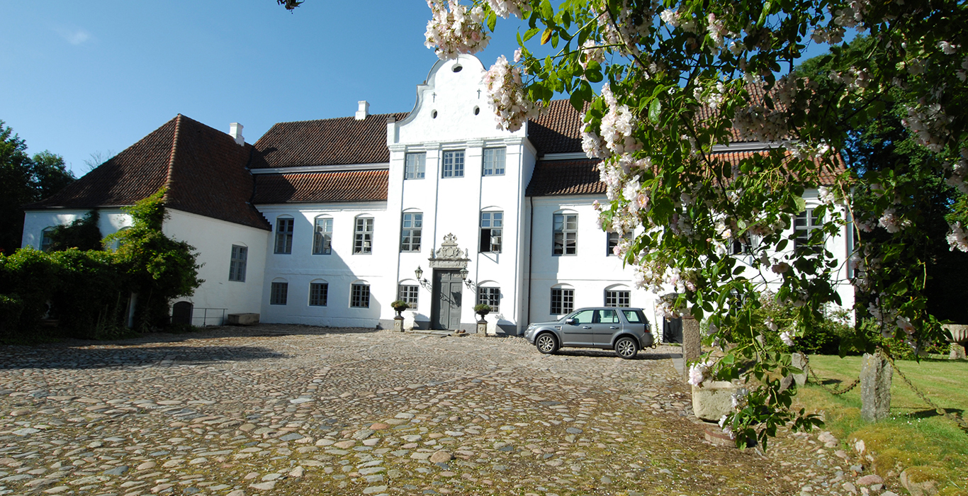 Den kvadratiske gårdsplads mønsterbelagte brolægning stammer formentlig tilbage fra hovedbygningens ombygning i slutningen af 1700-tallet.