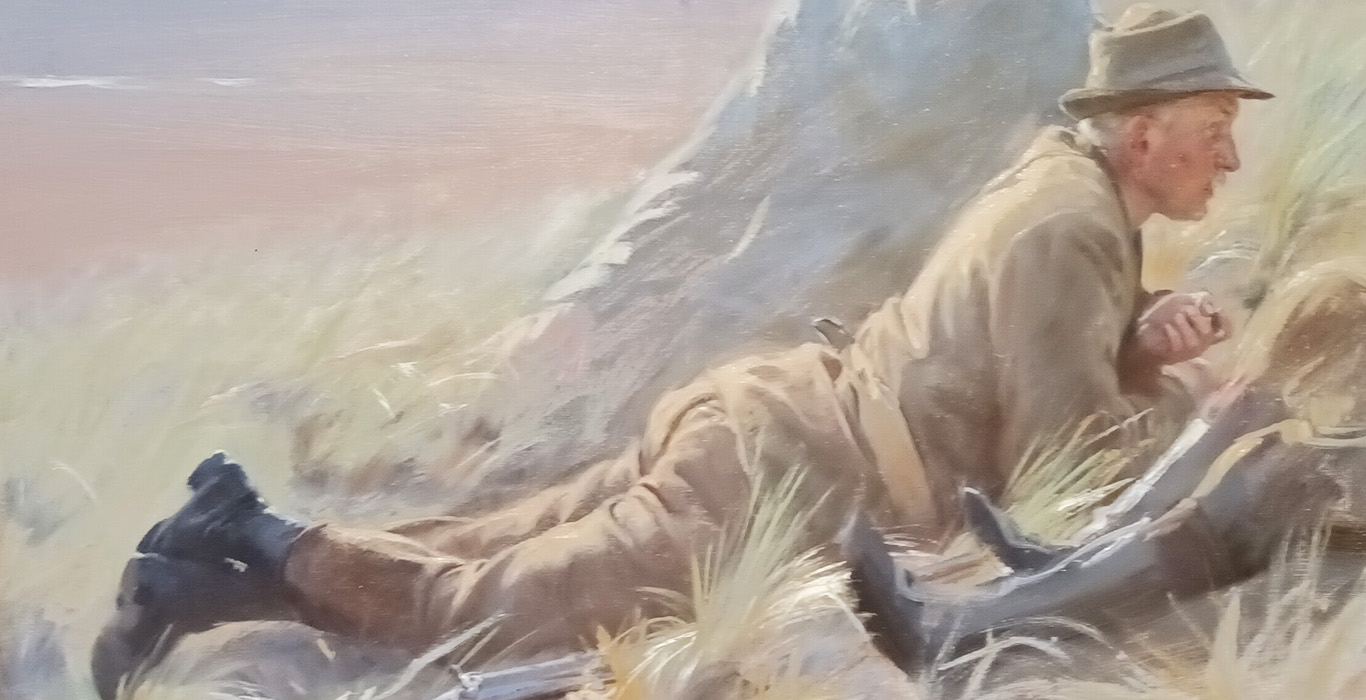 Arkitekt Ulrik Plesner liggende i klitterne, 1898. Forarbejde til "Skagensjægerne" 1898. AroS Kunstmuseum. Olie på lærred. 51,7+92,6 cm. Bet.f.o.t.v: S.K. Skagen . Aug. 98