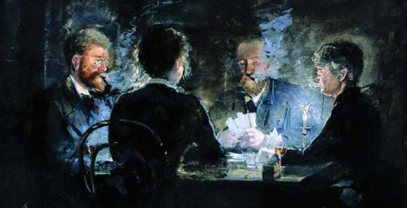 Anna Palm de Rosa (1859–1924) malede ''A game of l'hombre på Brøndums Hotel'' i 1885.