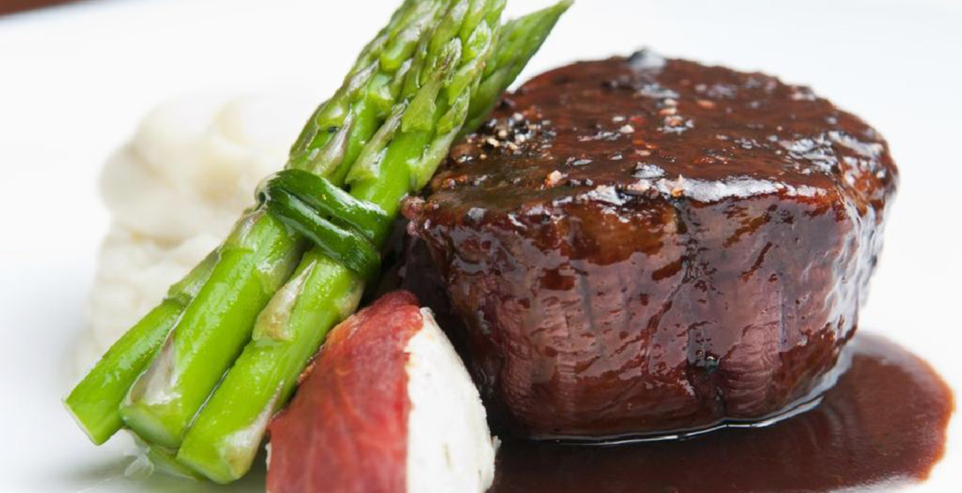 Server hver kødet med 1½ til 2 ounce au jus sauce.